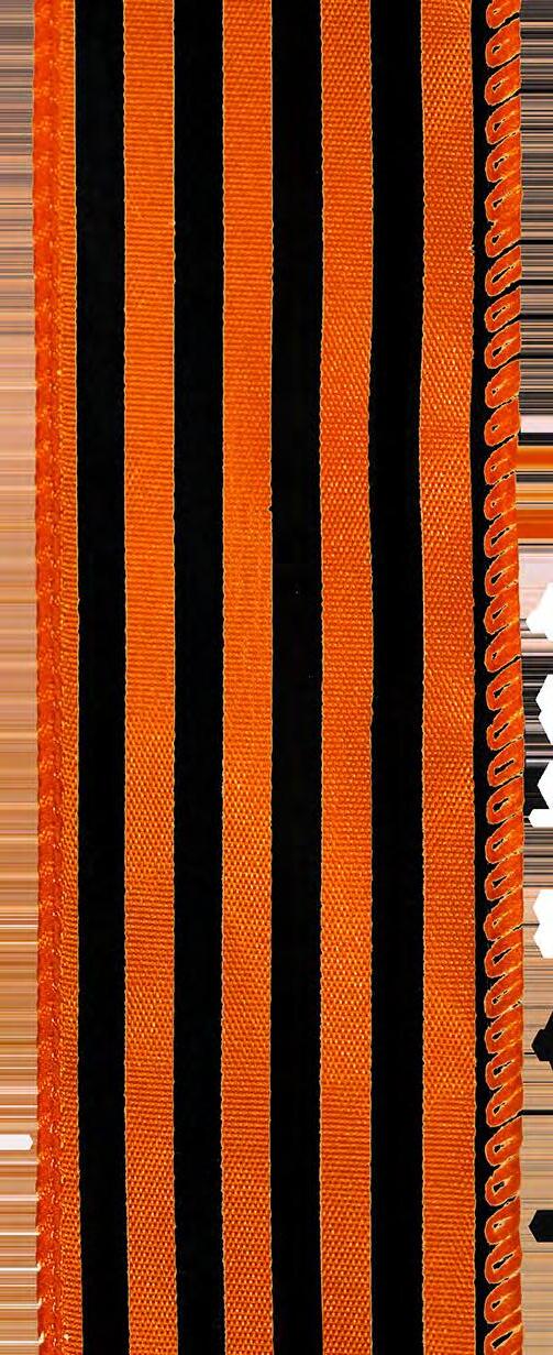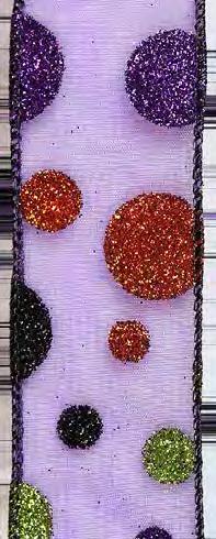#40 (2½”) 25YD WIRED HALLOWEEN RIBBON 22-7162-0026 Jella, Orange/Black Happy Halloween Print, Satin $25.99 rl F807 22-7103-C034 Spiderwebs, Orange Sheer $11.99 rl F616 22-7530-C034 Scuttle, Orange Glitter Webs, Black Sheer $10.99 rl F806 851-09-201 Silver Glitter Stripe, Black Satin $14.99 rl F742 851-09-203 Purple/Orange/Green Glitter Dot, Sheer $12.99 rl F750 851-09-301 Orange/Black/ Purple/Green Metallic Woven Chex $14.99 rl F795 851-09-200 Orange/Black Cabana Stripes, Satin $13.49 rl F794 #40 (2½”) 50YD WIRED HALLOWEEN RIBBON #9 (1.5”) 50YD WIRED HALLOWEEN RIBBON 22-7340-C084 Zoran, Silver Glitter Skulls, Black Sheer $16.99 rl F707 22-7341-C084 Crawley, Silver Glitter