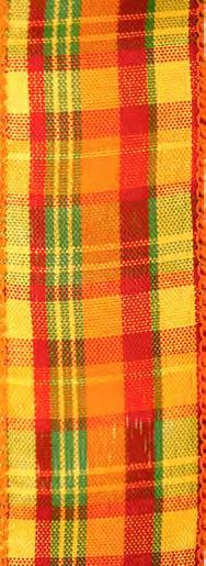 3-169MT/1BSF 4.5” Barn/Sunflower Metal Potcover, 12/pk $3.29 ea $39.48 pk F766 861-09-008 Rust/Emerald/Ocher White Stich Plaid #9, 50yd Wired Ribbon $14.99rl F603