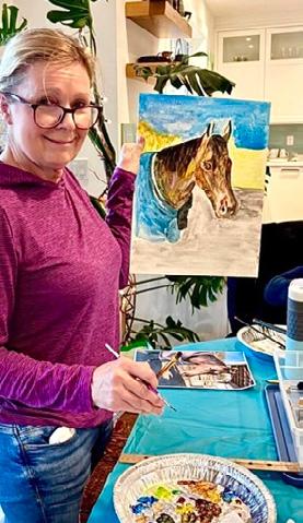 Still horse-related. Vivian Harder, as many will know, is a respected and talented equine artist. She set up her studio for us to paint the horses of our choice. After a quick but thorough tutelage on the process of structure, perspective, and use of colour, we each turned our focus to the purpose of producing a painting. Four hours and the same number of pizzas later, we were well on our way to creations that reflected our love for all things equine. I hope you enjoy the included photos showing our journey and joy.