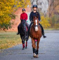 SEASON SAFETY TIPS WHILE HORSEBACK RIDING 4. LetThem Know WhenYou Should Be Returning 2. RideAWellTrained Horse (in case of nearby gun shots or a frightened deer darts out) 1. Wear Bright Colors 5.Add Bright ColorsTo Your HorsesAttireToo! 7. Be Safe and Have Fun! 6. Be Courteous OnTheTrail 3.Tell Someone WhatTrailYou &Your Horse Will Be Riding