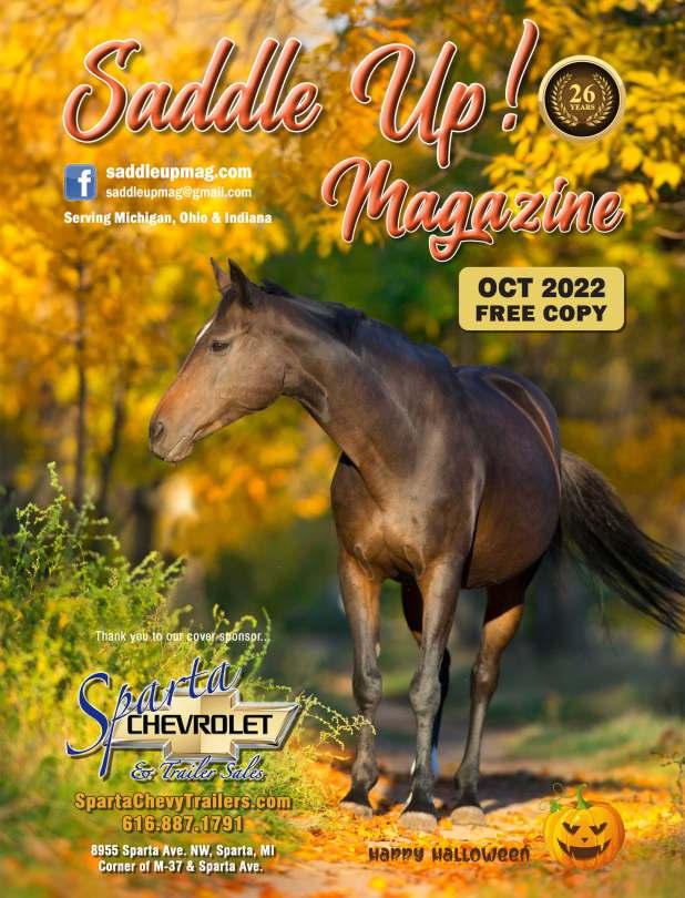 When protecting what matters most, the Call today!The Arnesen Agency (616) 527-3960 | TheArnesenAgency.com 1973 S. State Road, Ionia ®Auto | Home | Life | Business | Farm | Lake Estate EXPERIENCE MATTERS. FARM BUREAU INSURANCE® ® A Company Jim Moule 1130 Tipsico Lake Rd. Milford, MI 48380 (248) 887-4829 TACK SHOP • HAT CLEANING & SHAPING NEW & USED SADDLES American Big Horn, Fabtron & Silver Royal Saddles NEW & USED WESTERN AND ENGLISH TACK SADDLE & LEATHER REPAIR JIM’S QUALITY SADDLE, INC. Horse Blanket Laundry Wash, Repair, Waterproof Fast Turnaround | Quality Repairs Pickup and Delivery Available OPEN ALL YEAR | Hours: 9am-7pm | 7 Days A Week THE LAUNDRY BARN (248) 318 4646 (call/text) LARGE COMMERCIAL FACILITY – COME SEE US! 169 W. Clarkston Rd., Lake Orion, MI 48362NEW! Socks & Gloves by... Equine and Canine Vaccines 4x6 Stall Mats We Sharpen Everything! Clipper Blade Sharpening Shavings & Pelleted Bedding CUSTOM MIXES • ORGANIC POULTRY FEEDS GRAND GRIVER RAND RIVER EQUINE EFEEDS QUINE FEEDS WE HAVE WHAT YOU NEED FOR ALL OF YOUR ANIMALS! STORE HOURS: Monday – Friday 8am-5pm, Sat 8am-2pm, Sunday Closed grandriverfeed.com (248) 348-8310 51680 Grand River, Wixom, MI 48393 DELIVERY AVAILABLE OR WE LOAD YOU! $1.00 OFF IVERMECTIN DEWORMER WWW SADDLEUPMAG.COM(6)NOVEMBER 2022 • C & C PUBLISHING, INC. ©2022 WE’RE READY FOR WINTER. ARE YOU?