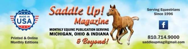 15 minute trailer ride to multiple Metro & State Parks Conveniently located minutes from Milford, Commerce, West Bloomfield, Bloomfield Hills and White Lake CALL FOR AN APPOINTMENT – 248.737.1465 or email: info@ivoryfarm.com IVORY FARMS • 9990 COOLEY LAKE ROAD • WHITE LAKE, MI 48386 • Top quality 1st & 2nd cutting hay • Stalls cleaned 7 days • Custom feeding program • 8pm night check – hay & water topped off • Knowledgeable staff on duty • No extra charge for farrier/vet appointments • Open 7 Days 9am-9pm • Hay fed outside all winter • 110’x60’ indoor arena w/mirrors • 140’x80’ outdoor sand arena • 150 well-groomed acres for trail riding • Well-insulated barn, stays comfortable year roundFULL SERVICE BOARD, PLUS 35 ACRES OF TURNOUT MONTHLY BOARD INCLUDES: Check out our drone video: www.ivoryfarm.com WWW SADDLEUPMAG.COM(52)NOVEMBER 2022 • C & C PUBLISHING, INC. ©2022 EQUINE MEDICAL SERVICES 947-570-1078 Dr. Shannon Lynch • Quality Veterinary Care • Skilled Dental Services • Emergency Coverage equinemedicalservices@yahoo.com 2050 W. Dawson Rd., Milford, MI 48380 LLC Used Tack & Consignments 989.277.8917 8555 Monroe Rd., Durand, MI 48429 Brightside LLC Used Tack and Consignments Tues-Fri Noon-6pm Saturday 10am-4pm Sundays & Evenings by Appointment 1/4 mile from I-69 Durand Exit Halfway between Flint & Lansing 1-800-334-1994 Horse Blanket Cleaning & Repair Fiber Luxe Horse Blanket Cleaning Email us at: flblankets@comcast.net FREE PICK-UP & DELIVERY