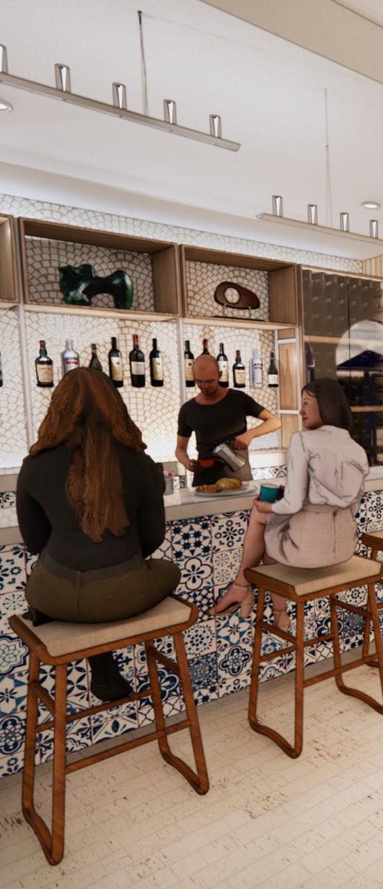Inspired by the Mykonos and Santorini islands of Greece, this restaurant transports you across the ocean through coastal blues, crisp whites, and natural materials, creating an immersive Mediterranean dining experience.