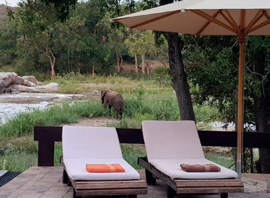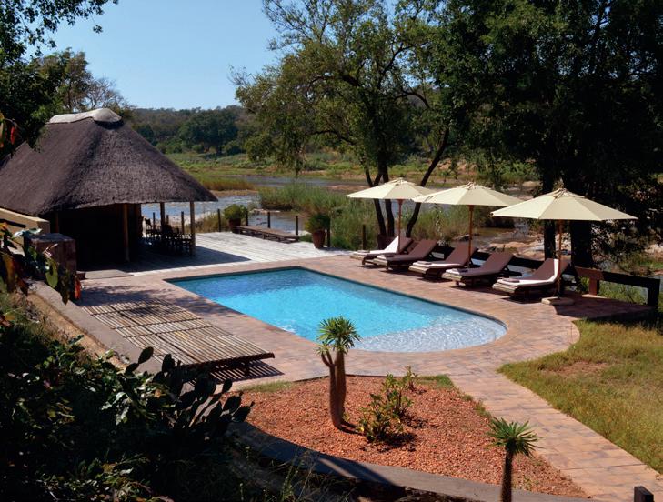 Den lille intime lodge med blot 7 dejlige værelser er beliggende direkte til Olifants River i den legendariske Greater Kruger National Park i Sydafrika, et af det sydlige Afrikas allerstørste naturreservater. Selvfølgelig er der masser af safarioplevelser i vente på de interessante såkaldte game drives ude i den afrikanske bush, men også direkte fra lodgens terrasse vil man være helt tæt på den fantastiske natur. Lyt til flodhestenes højlydte grynten fra floden, betragt dyrelivet lige ovre på den anden side af floden, hvor antiloper, elefanter og bøfler slukker tørsten og nogle gange tager sig et forfriskende bad. Nyd de mange, anderledes og ofte farverige fugle, der holder til omkring lodgen, mens man får en forfriskende dukkert i den dejlige swimming pool eller blot nyder roen og fordybelsen.