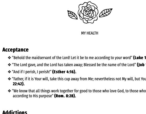 ❖ Margins for notes - The page margins are provided for you to reflect on Bible verses as you spend time with God. You can use them to jot down outlines for meditations and sermons based on biblical texts. You can also use them for journaling, recording answered prayers, and in many other ways that help you express your creativity.