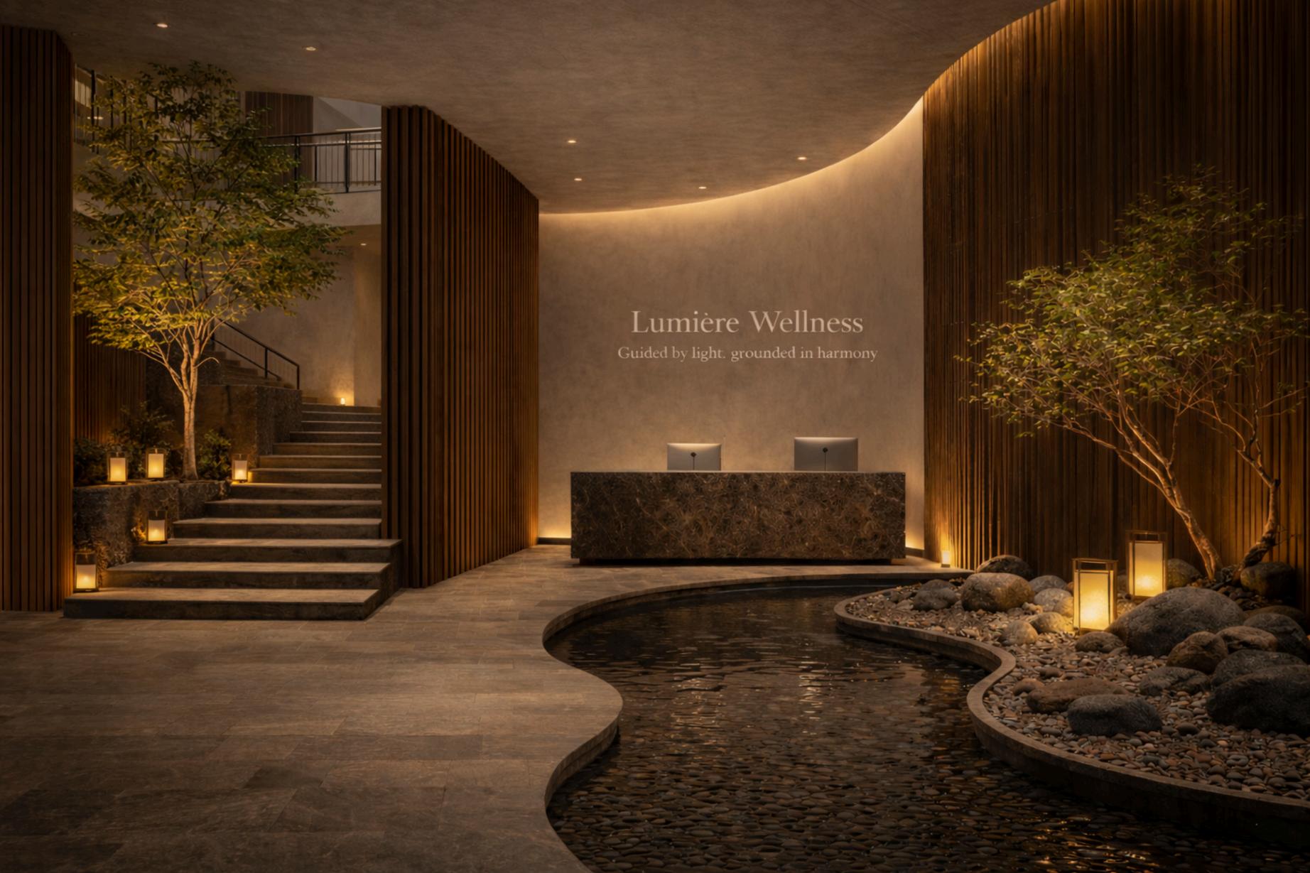 ning a wellness center where architecture becomes a quiet yet powerful architecture and biophilic design, the environment is composed to ultimately heal. The space unfolds as a continuous experience rather tens, materials ground, and spatial rhythms guide the body into states of resent woven into the architecture as a living element that restores our ound us. At Lumiere Wellness, healthcare shifts from intervention to f connection, ritual, and everyday well-being. The built environment acts lyst supporting a more holistic, human-centered vision of health that hcare environments could begin healing before