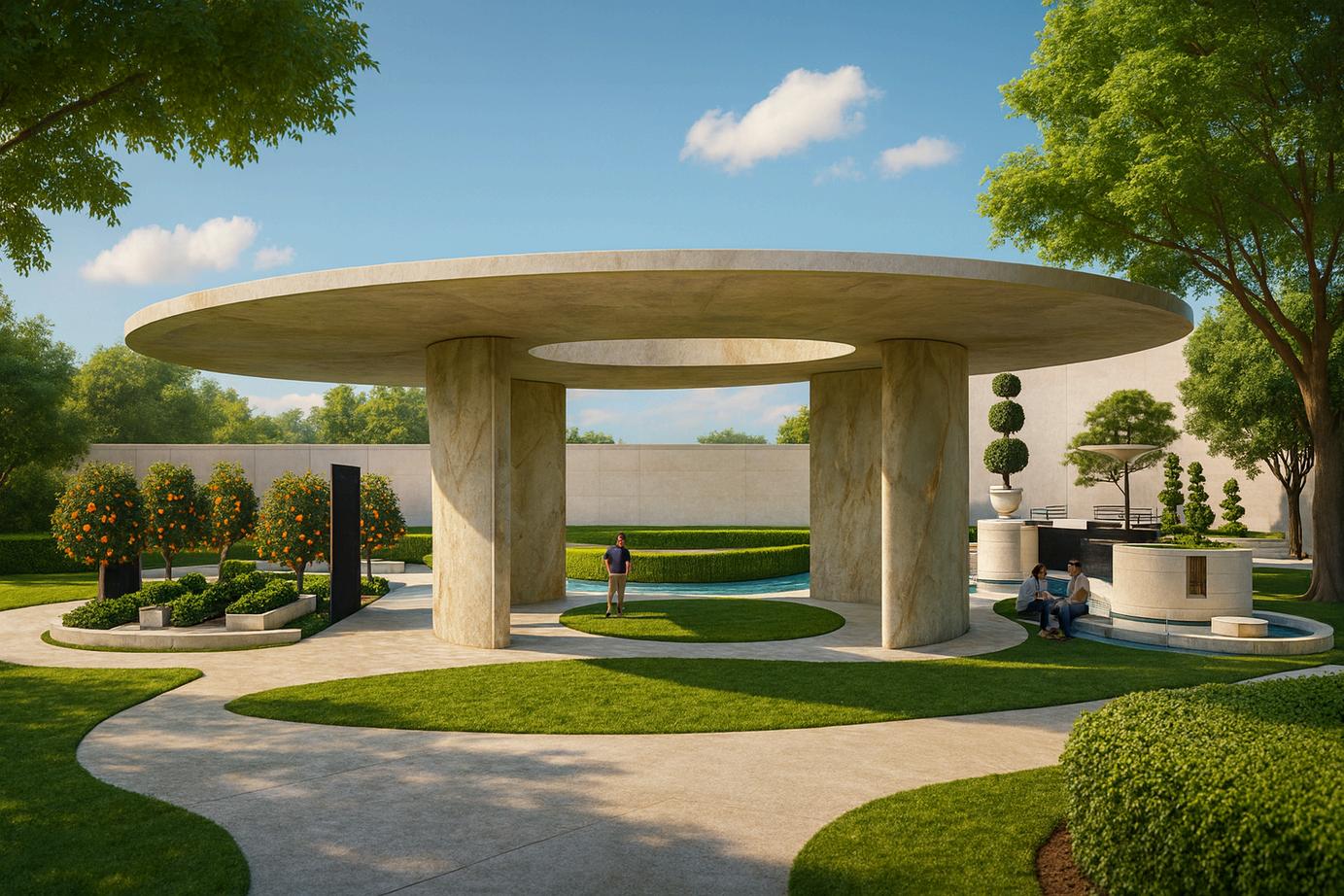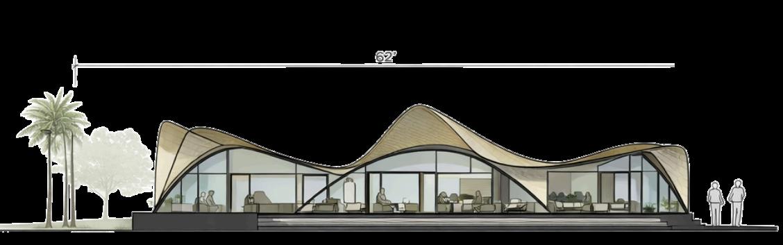 conceived pavilion at the heart of the SDSU campus, uary where students can pause, restore, and reconnect with s. Its open, transparent architecture gently dissolves the and exterior, inviting natural light to permeate the space views of the surrounding landscape. A refined material palette paired with soft, organic hues such as sage green infuses texture, and a quiet sophistication. Rooted in biophilic design ers a deeper connection to the natural environment, enhancing productivity, and promoting overall well-being. er, it is a thoughtfully crafted experience that cultivates sense of belonging within the campus community.