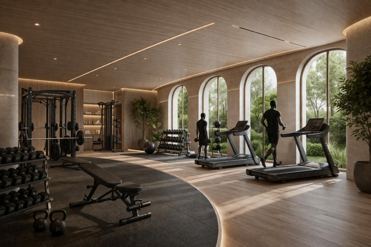 The Movement & Mind-Body spaces at Lumiere Wellness are designed to support a holistic approach to well-being rooted in flow, strength, and balance. Accommodating both active movement and restorative practices, these spaces guide users through a natural rhythm of exertion and recovery. Through thoughtful spatial transitions, natural materials, and soft lighting, the environment fosters physical resilience, mental clarity, and emotional balance, encouraging a deeper connection between mind & body.