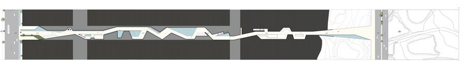 Visual and physical connection between the overpass and underpass through skylights.