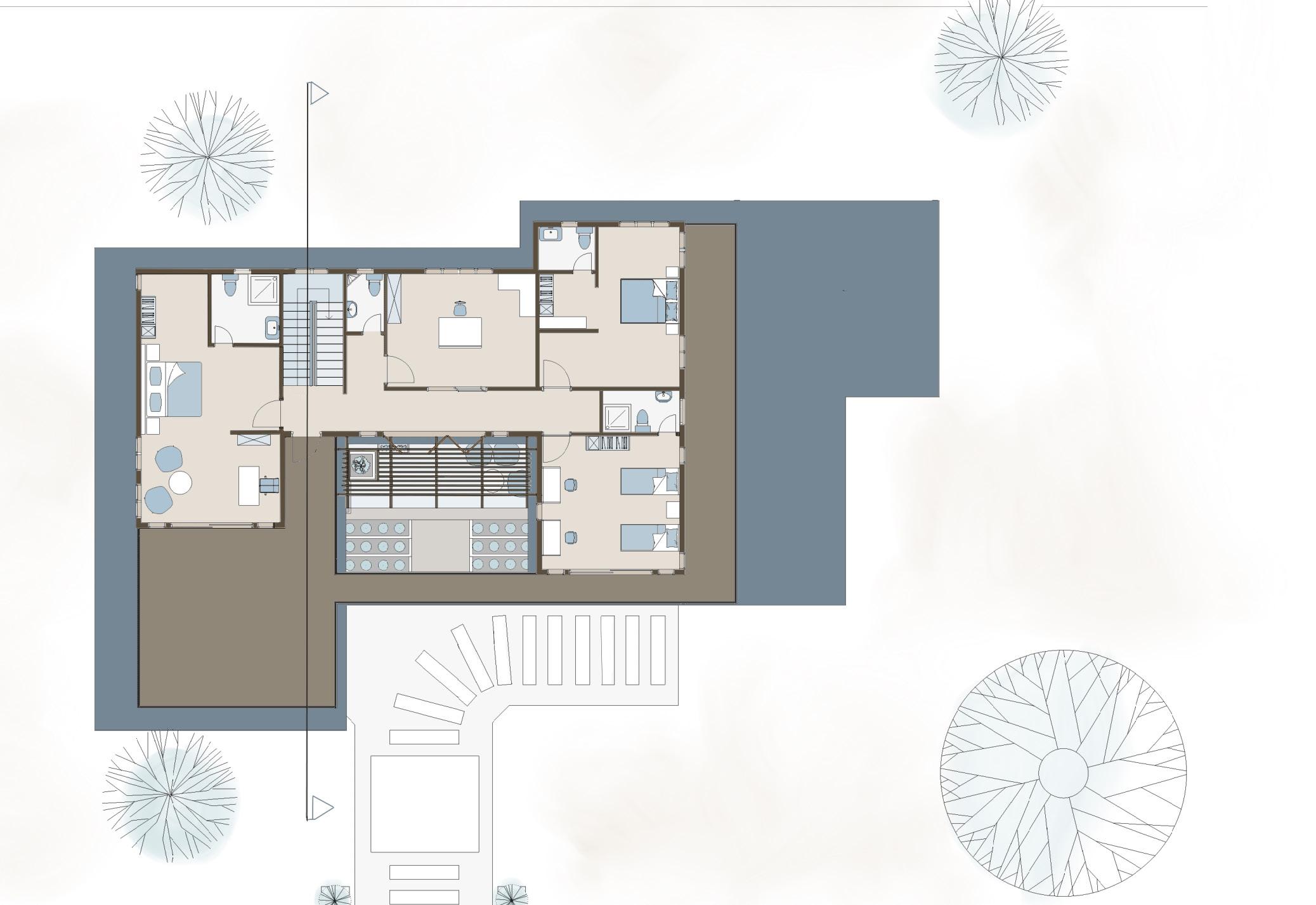 THE PROJECT BRIEF WAS TO DESIGN A RESIDENCE WITH LAKE VIEW FOR AN ARTIST AND A DANCER, THEIR CHILDREN AND A GRANDCHILD.