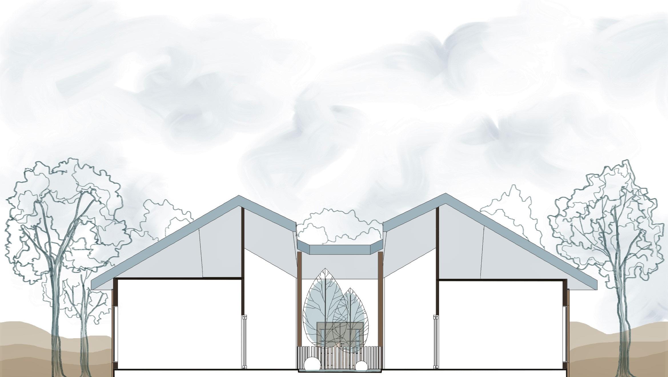 LOCATED ON A LAKEFRON, THE RESIDENCE ENCOMPASSES HORIZONTALITY TO MATCH THE LAKE WATERS THROUGH LARGE OPENINGS AND FLAT DOUBLE ROOFS. IT OFFERS BEAUTIFUL VIEWS OF THE LAKE FROM ALMOST EVERY ROOM, PROVIDING A SERENE AND CALMING FEELING TO THE USERS.