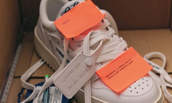 (1) OFF-WHITE T-Shirt € 325,(2) T-Shirt € 350,(3) Langarmshirt € 450,(4) Schildkappe € 295,(5) T-Shirt € 450,(6) & (8) Sweatjacke € 695,(7) T-Shirt € 325,(9) Hoodie € 625,(10) Strickmütze € 250,(11) & (12) Schuhe „Out of Office“ € 535,(13) & (20) T-Shirt € 325,(14) T-Shirt € 325,(15) Hoodie € 725,(16) Schuhe „New Low“ € 375,(17) T-Shirt € 425,(18) Hoodie € 750,(19) T-Shirt € 425,-