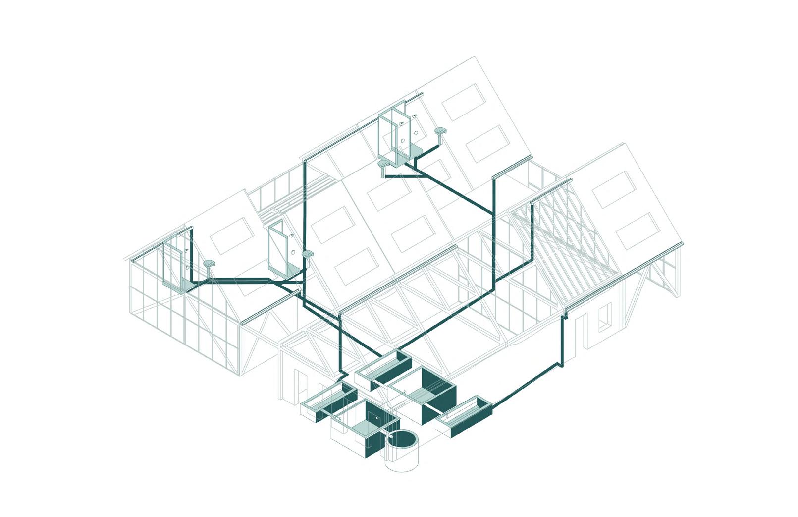 The project storage the rainwater from roofs and the gray water from the apartments. In order to storage the water, it will be filtered by natural sand and gravel filters. After the filtering process, the water will be storage in a tank to be used back in the building.