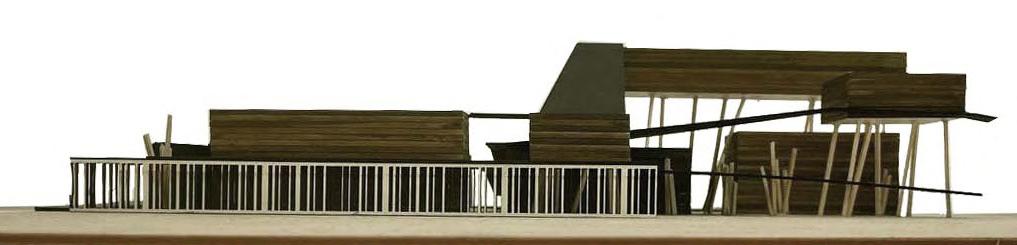 • The ramps wrap the building and make connections and legible circulation between the volumes. The ribbon starts from the street, extending the urban fabric, weaving around the volumes and nesting them in place.