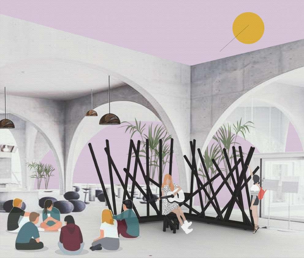 From data collecting on waste generation to context analysis, it appears that the city of Barcelona produces a lot of waste every year due to the large number of tourists from all over the world. This project is a temporary and recycable structure in a community space that focuses on issues of sustainable structure, recycling, and waste by rethinking the ways that its structure is developed, built and used.