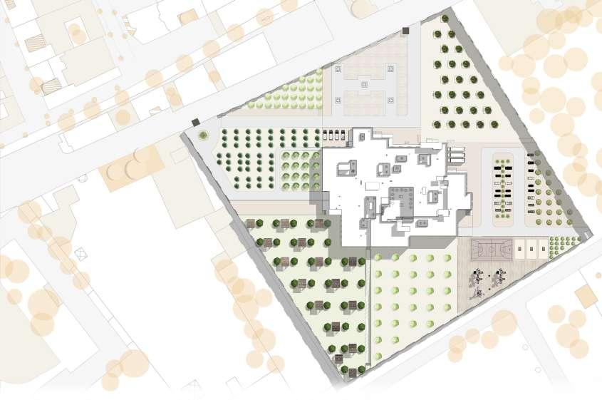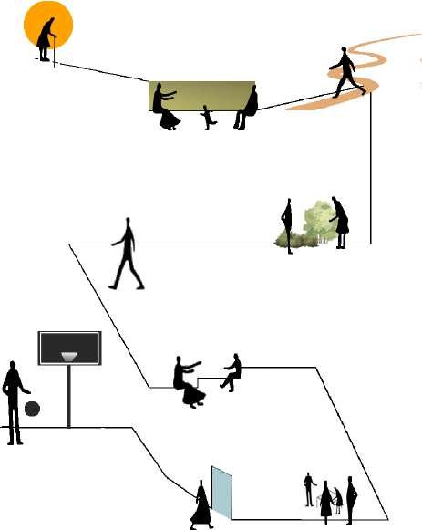3.Due to the slope of 4% of the Earth from north to south of the site, I consider villas with less height than apartments in the north of the site to fit the urban skyline.