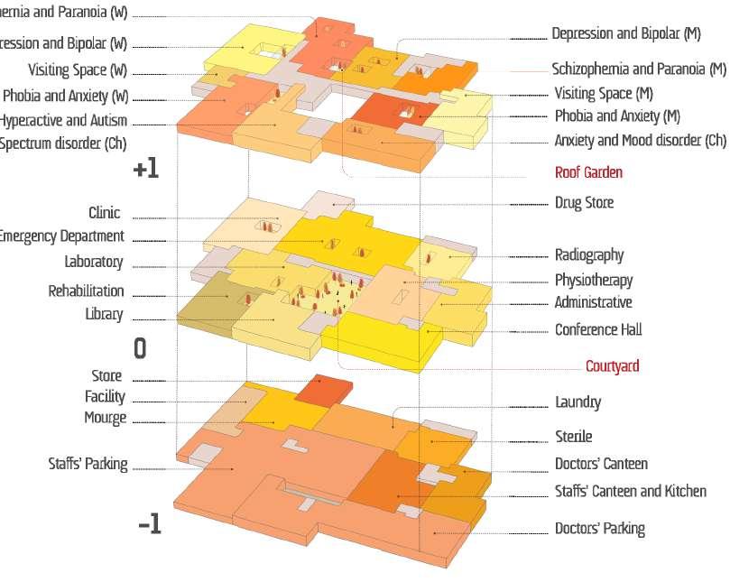 The complex includes two residential districts which conclude villas with 200 m2 area and apartments with 80 m2 up to 150 m2 areas. Regional activities such as commercials, cultural and religious buildings are designed along the old passive brick kiln building to bring the inhabitants of different districts of the complex together and make the kiln bold.