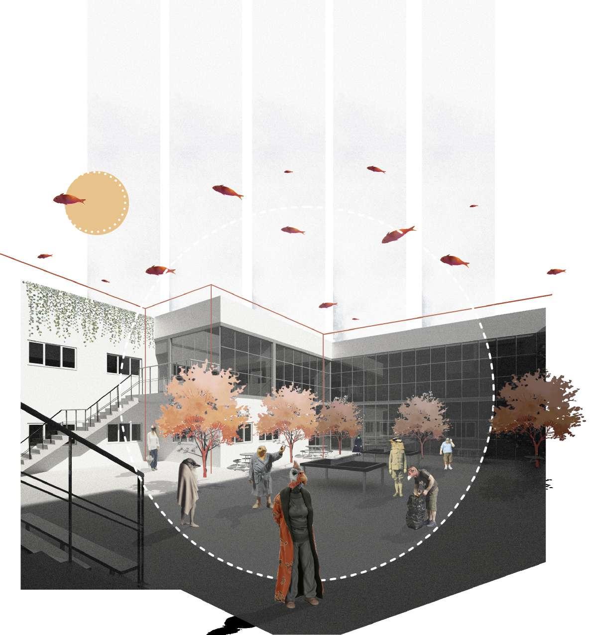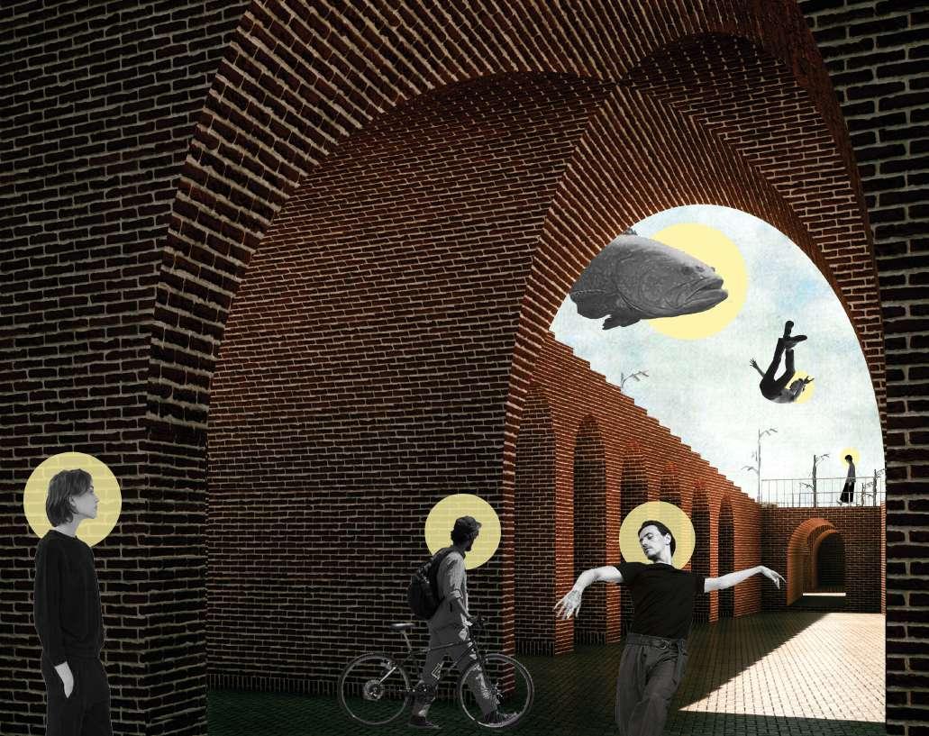 6.To mark the passive brick kiln as a historical and cultural symbol, I gave its rooms a traditional market use and set up entertainment centers such as restaurants, cultural centers, artificial lakes, and sidewalks around it.