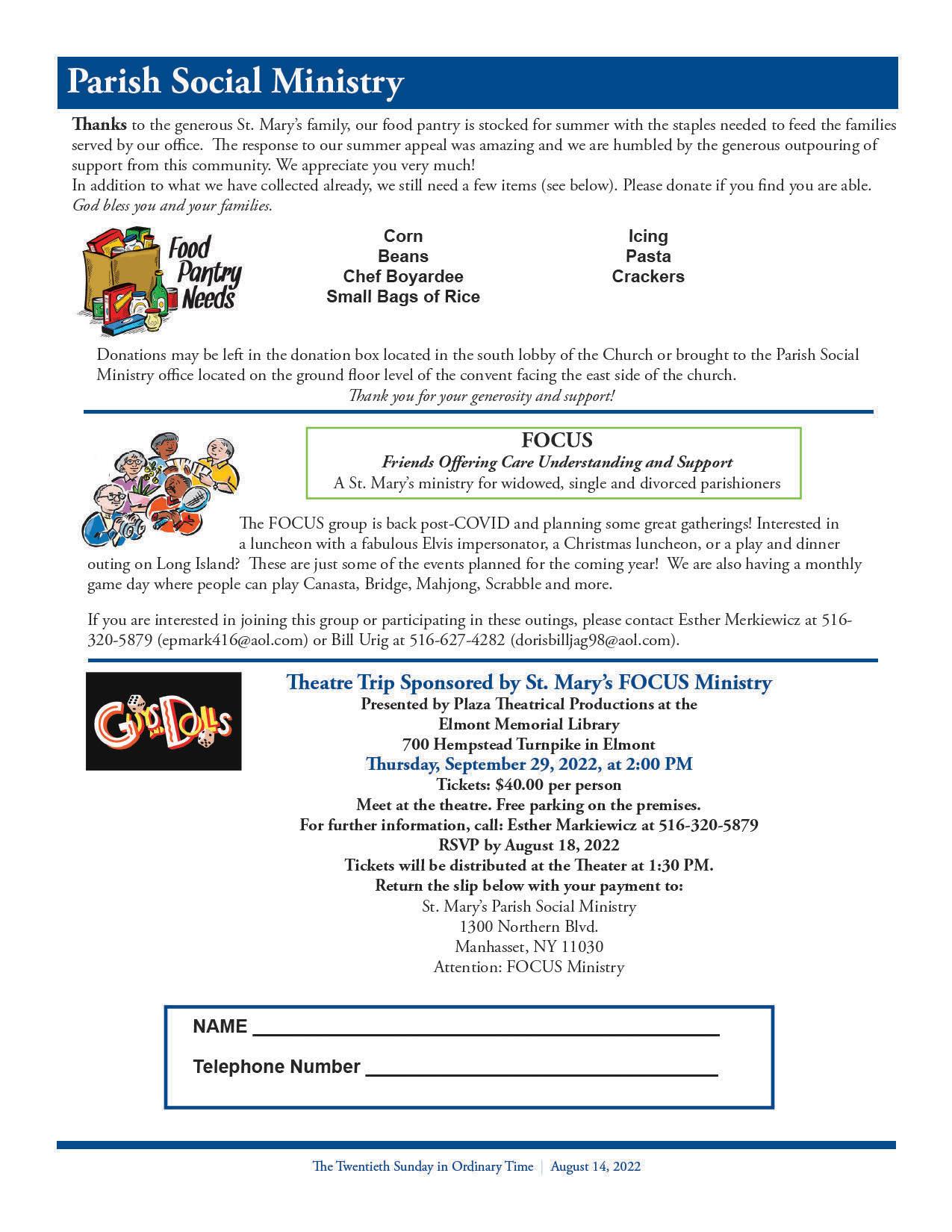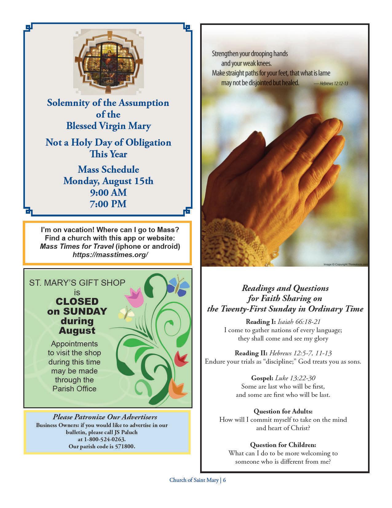 Church of Saint Mary Parish Bulletin: August 14, 2022