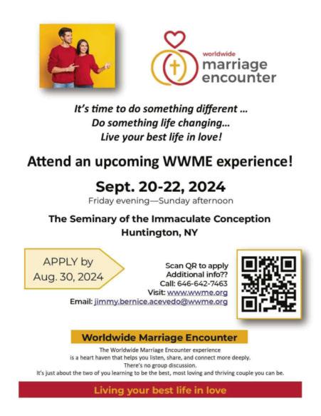 Te Knights of Columbus Fr. William A. Daly, SJ Council #2122, launched a Wheelchair Initiative within the parish in 2022. Modeled after the global program created by the Knights that makes thousands of wheelchairs available worldwide to veterans and those in need, the program has since been helpful to parishioners who need temporary, short, or long-term use of a wheelchair. As the Knights look to continue their initiative this Fall, their goal is to provide more help within our parish community simply by getting the word out of this opportunity. Presently, the Knights have two wheelchairs available and can obtain additional wheelchairs with advance notice. For more information or to sign out a wheelchair, please get in touch with the Parish Ofce at 516-627-0385.