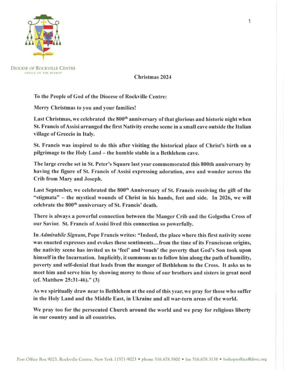 On behalf of myself, the priests, the Sister Servants of the Immaculate Heart of Mary, the Dominican Sisters of Mary, Mother of the Eucharist, and the entire parish staf, we wish you and your families a very blessed and joyful Christmas.