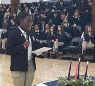 At 10:00 AM, administrators, faculty, and students attended Mass in the Church of Saint Mary. Miss Grace DiFonzo, Miss Divine Awoleke, and Mr. Rocco Calo, who are Seniors were lectors, contributing to the sense of community and shared responsibility. The warm and welcoming atmosphere was fostered by Seniors, Mr. Ryan Werner, Mr. Vincenzo Bivona, Miss Tessa Carrano, and Miss N’kayla Washington who greeted the community at the entrances to the Church. After the Eucharistic celebration, everyone returned to Marist Hall for a presentation on the Jesse Tree facilitated by Juniors Miss Saoirse McNamara and Miss Caterina Bootsma, which included brilliant and wellarticulated facts about the significance of the wonderful tradition, further enhancing the sense of shared knowledge and understanding.