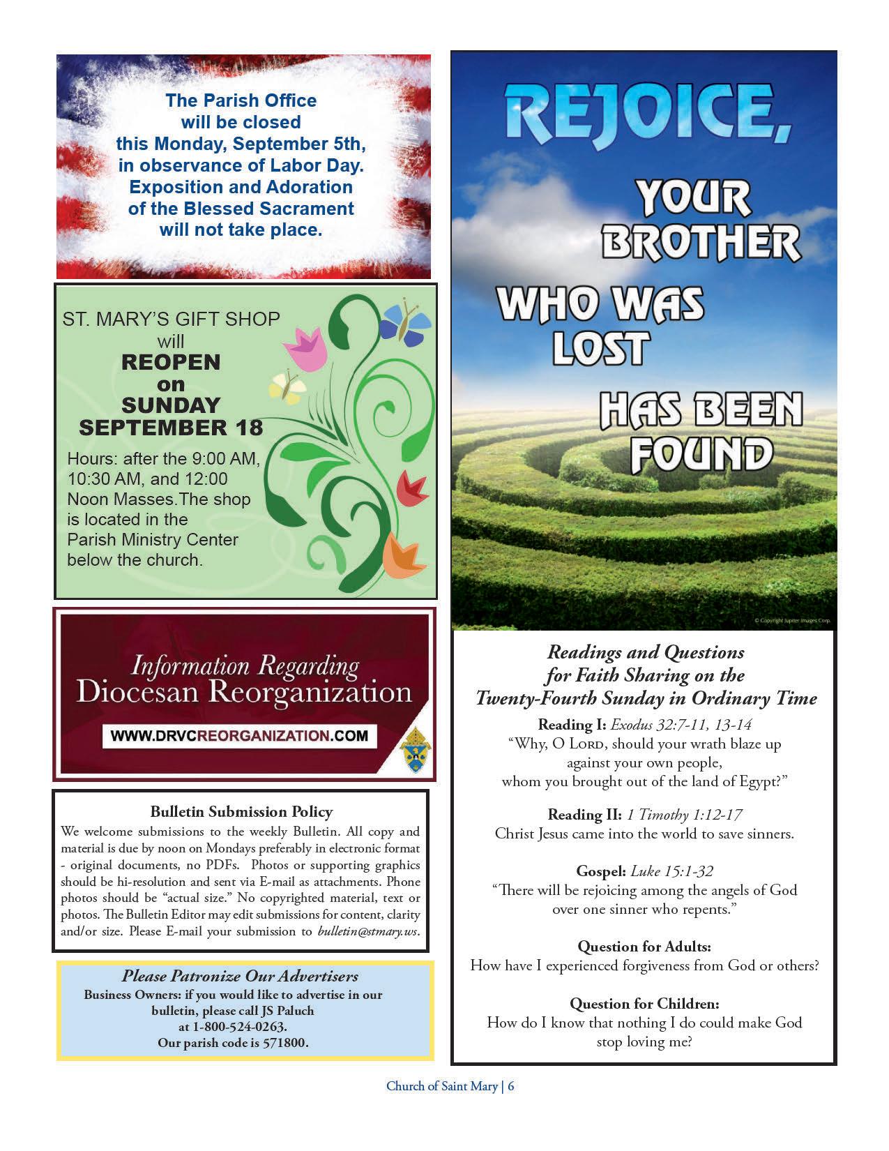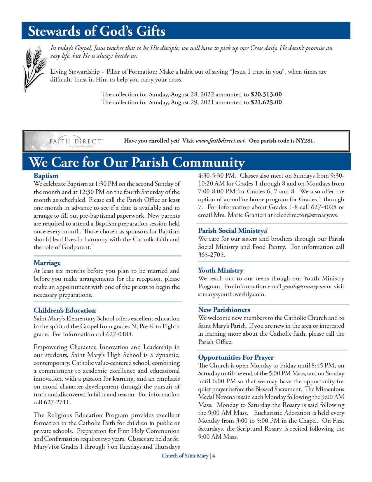Church of Saint Mary Parish Bulletin: September 4, 2022