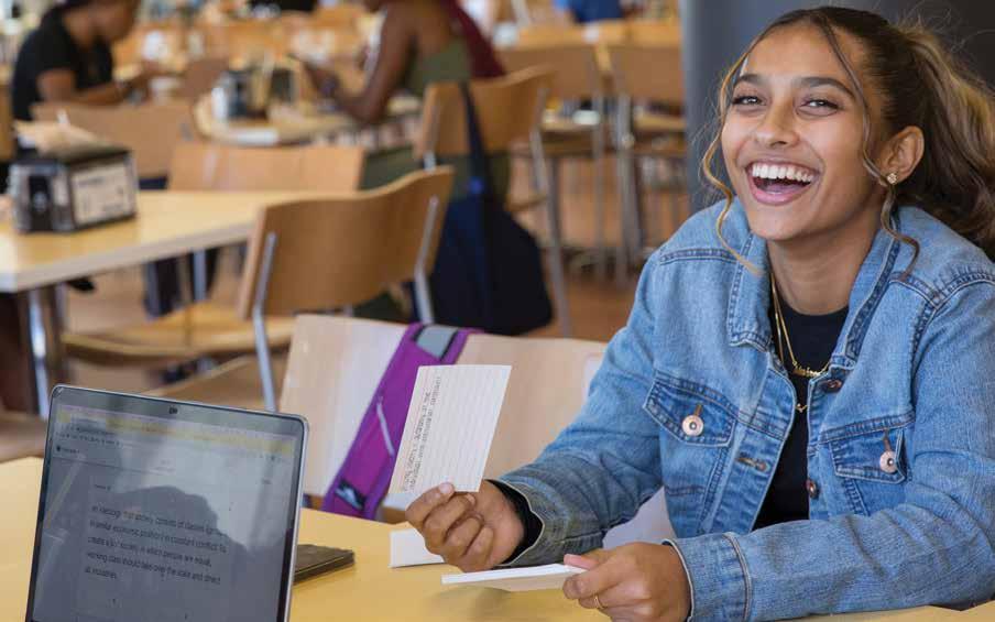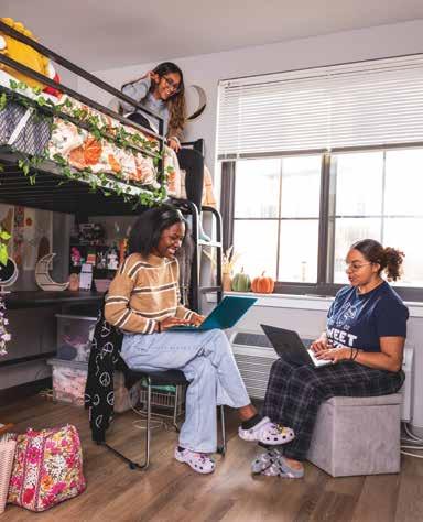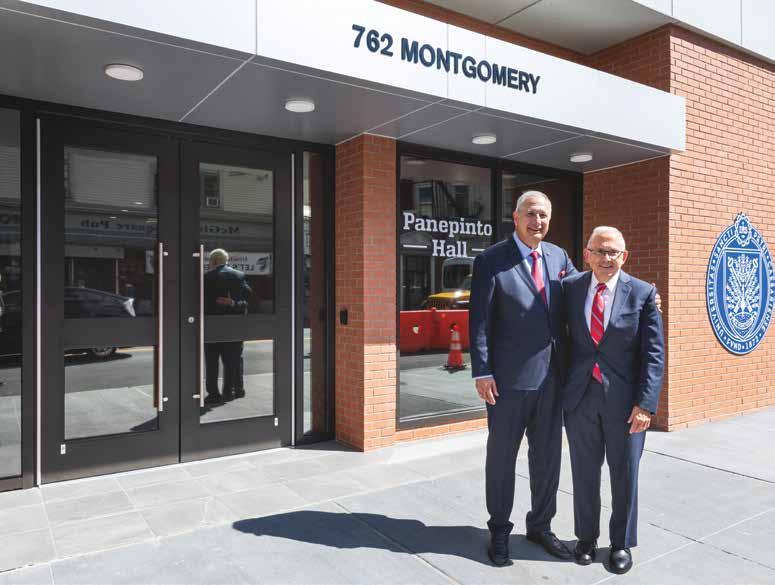 Life is good inside Panepinto Hall, the new residence hall at 762 Montgomery Street that was officially dedicated on September 21, 2022. Since it opened to residents, upperclassmen have quickly settled into the six-story facility, which features apartmentstyle living, kitchenettes, private bathrooms in each suite, study lounges, ample laundry facilities and a communal room where a group of students organized a “Friendsgiving” before the holiday break.