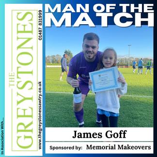 Despite the mounting deficit the home side refused to capitulate, and Ian King tested the underworked Goff but after 54 minutes Scott Joseph added the sixth goal after a goalkeeping error. Joseph then added a seventh goal just past the hour and after a series of substitutions by both sides Sam Willis added his goal to complete the visitors’ scoring. Seven minutes from time Huntingdon got the reward of a late consolation goal as they refused to be totally dominated.