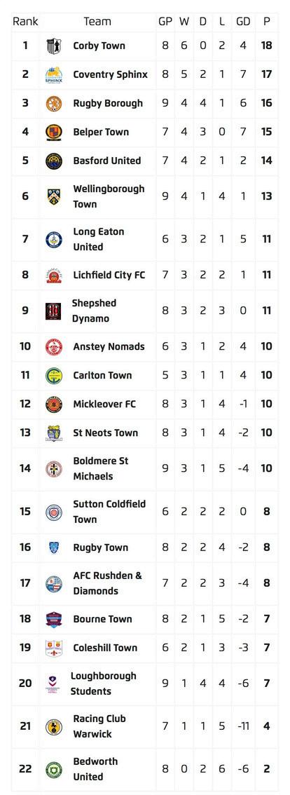 Coventry Sphinx: Woods, Vallance, Tellyn, Fuseini, Nicholson, Shorrock, Bowman, Woodward, Shipman, Carey, Smith