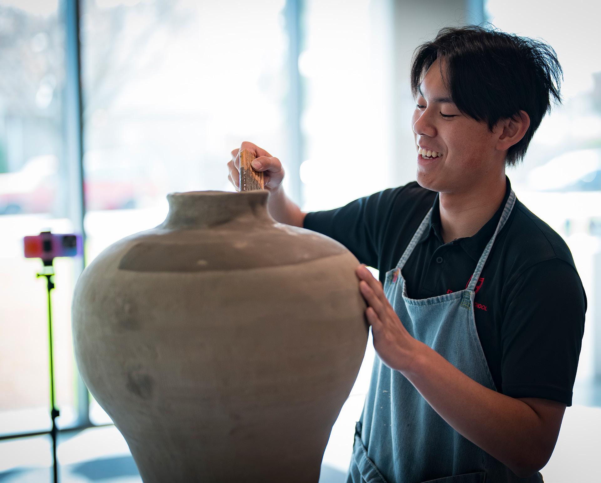 In this course, students spend half of the year on the potter’s wheel making increasingly complex pottery forms. The other half of the year is spent creating hand-built sculpture projects, including using and making plaster molds for slip casting. The course is projectbased and students are encouraged to express their own ideas, emotions, and personalities using clay and ceramic processes. Sketchbooks are used to document the creative processes explored throughout the year. The course includes visiting artists and field trips for inspiration and learning about the diverse world of Ceramic art. A “Raku firing” at the Shadbolt center closes out the year. It gives students the opportunity to participate in the experience of directly working with fire. All work assigned can be completed in class time, but students are encouraged to attend Ceramics Club to extend their exploration and skill development.