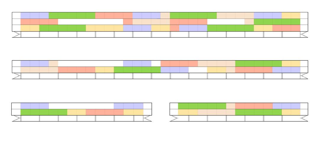 The elevations show the vivid space between the different exhibition pavilions. The characteristics is not only visble and tangible in the interior of each pavilion but also on the exterior when visitors wander around public areas.