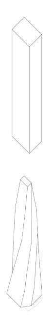 The two photos show the two different languages on the façade. The one on the top presents the twisting language driven by the various types of interstitial spaces whereas the one is seen as a response to the other skyscrapers downtown by adapting a similar language.