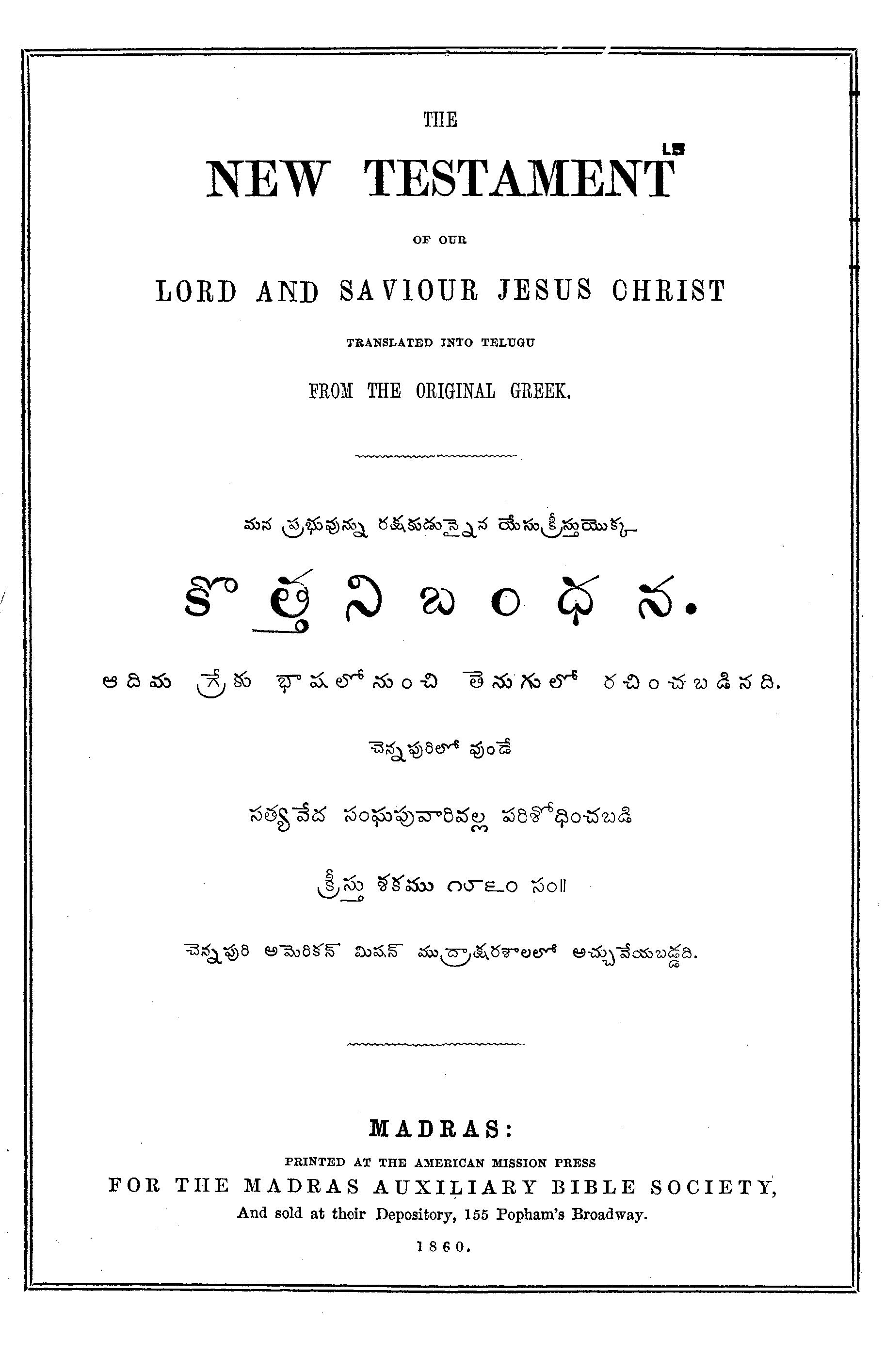 1860 తెలుగు బైబిల్ | 1860 Old Telugu Bible