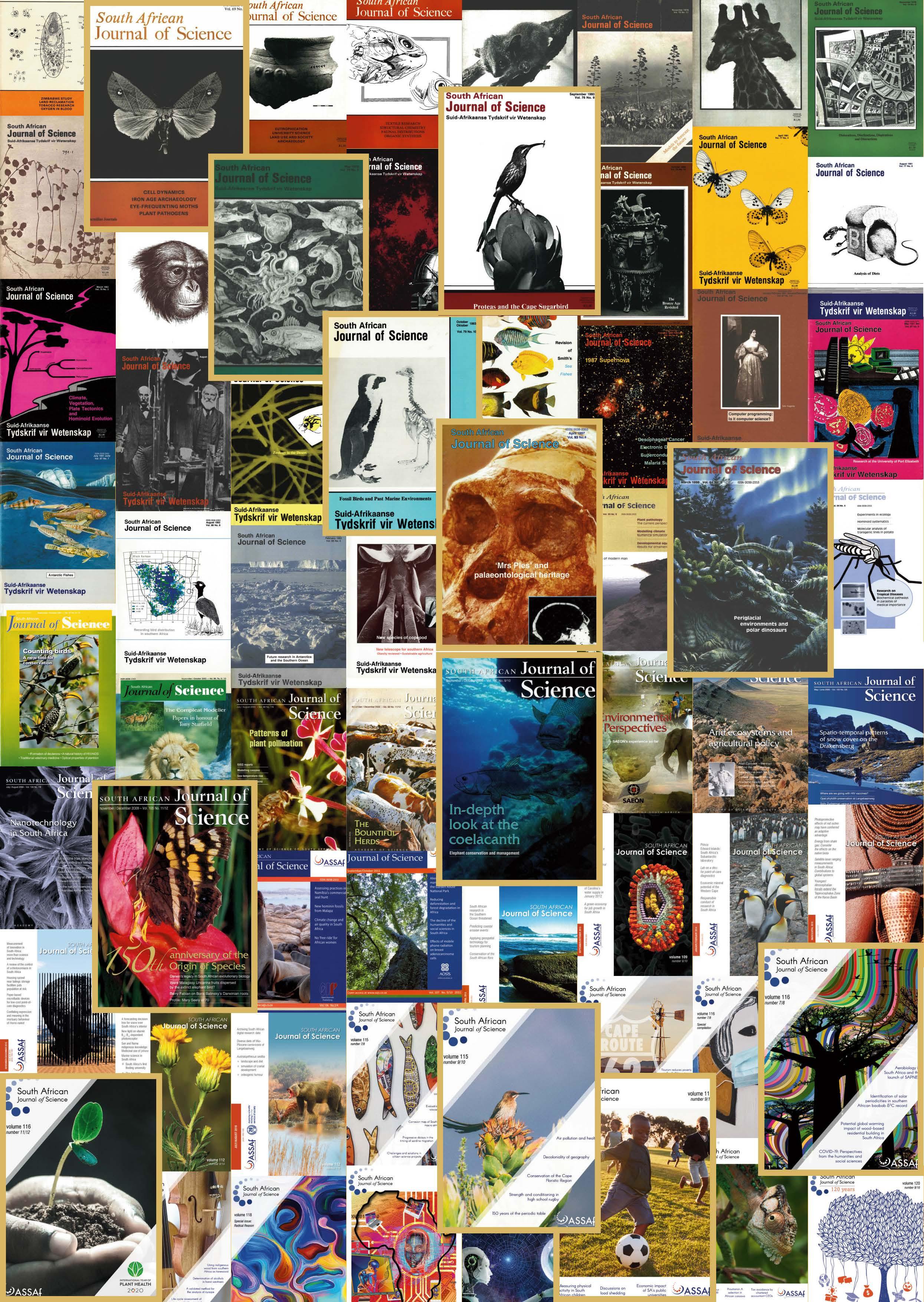 Cover image: The many ‘faces’ of the SAJS through the last few decades. The larger, framed covers of the Journal are those that were selected as ‘the best’ of each decade by SAJS readers and social media followers. Cover design: Nadia Grobler.
