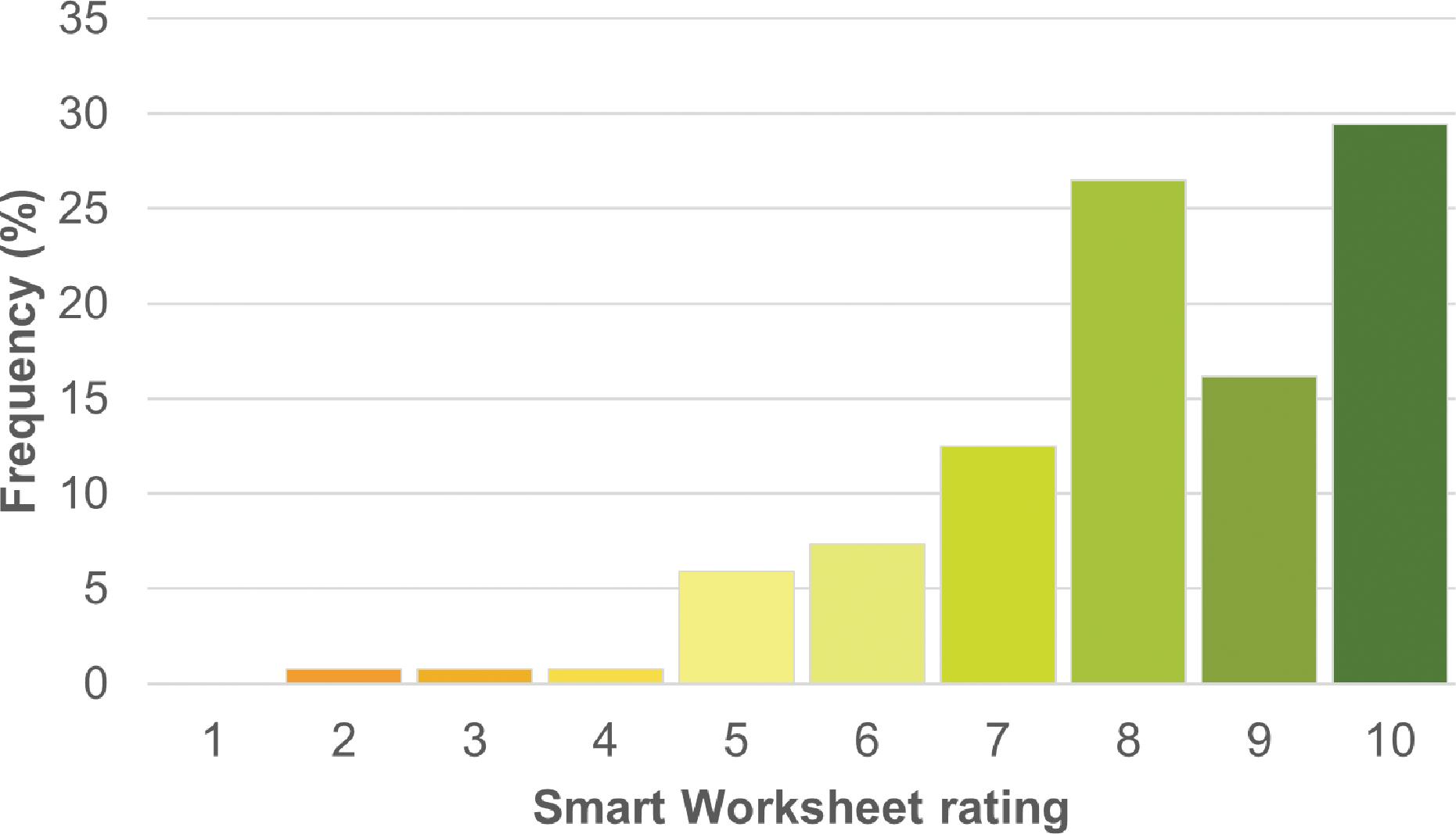 Figure 4: Frequency histogram of student ratings of the Scientific Numeracy Smart Worksheet.