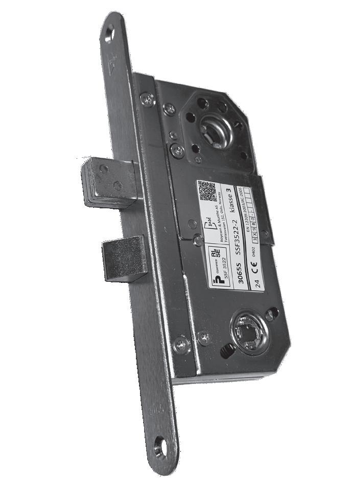 Fallregellås för dörrar med krav på godkänd klass 3 låsning. 90° nyckelvridning.