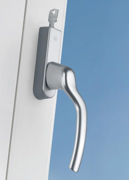 Tack vare den smala rosetten, som kan vridas 180 grader, passar det svängda handtaget flexibelt till alla standard fönster. Tillverkad av aluminium. Finns i serierna Tôkyô och London i ytbehandlingarna F1 silverfärgad och F9714M svart matt.