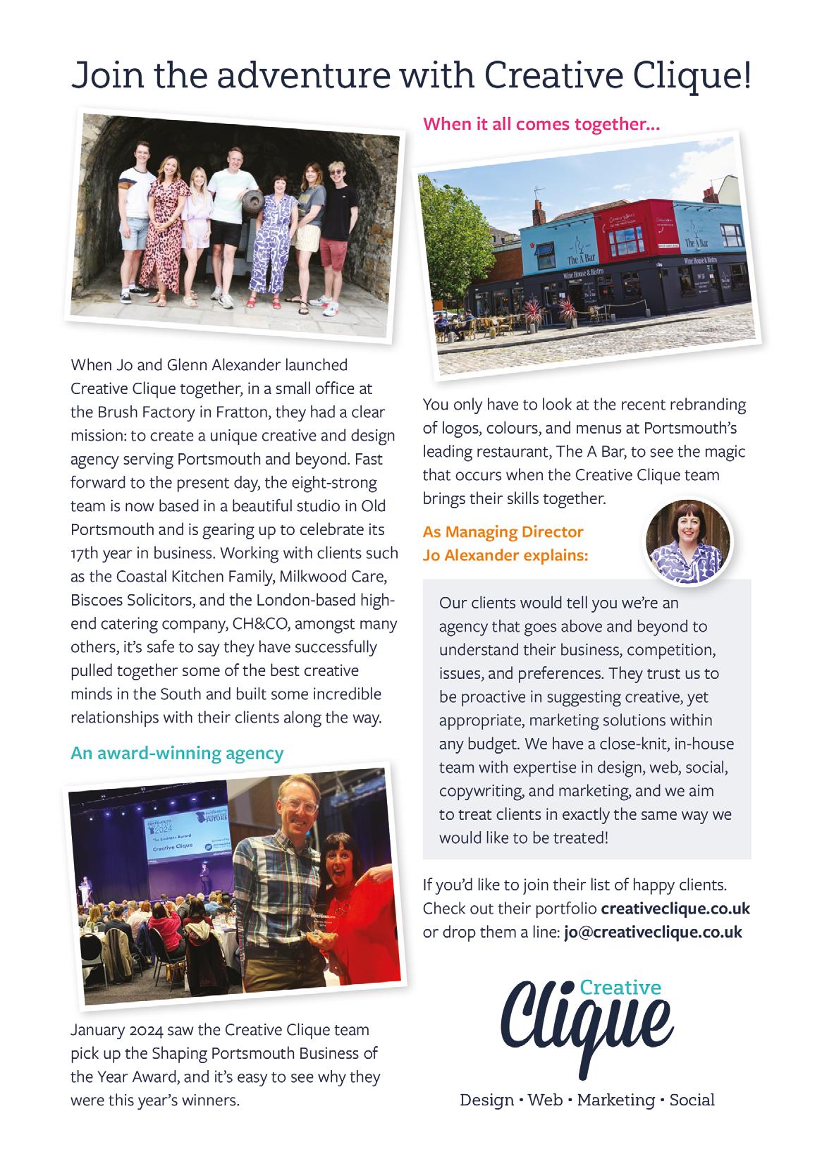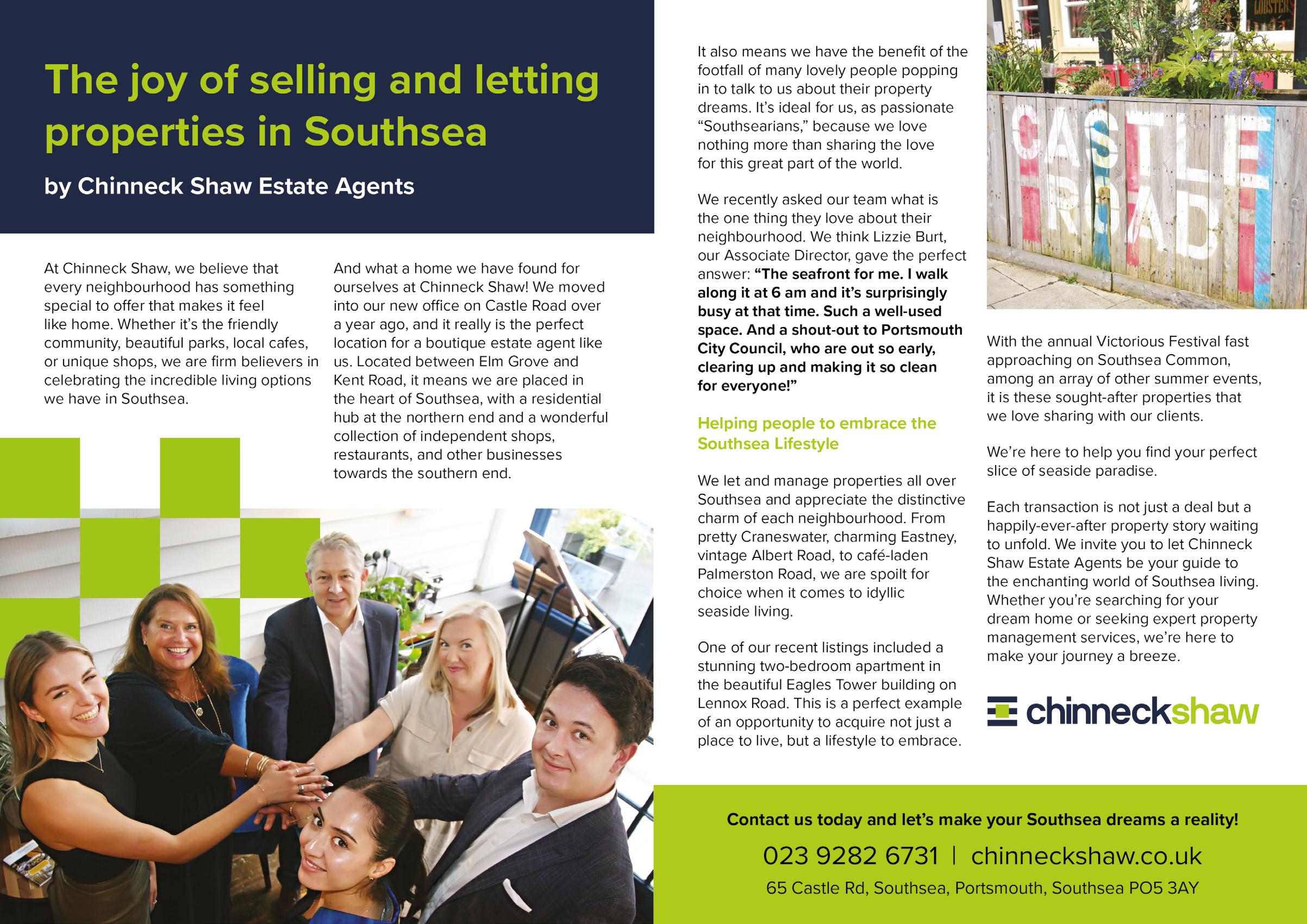Southsea Lifestyle is the only lifestyle magazine delivered to people’s homes across the city. Affordable advertising rates and a loyal readership, no wonder 75% of our advertisers have been with us for 2 years or more. Just request a media pack for our October/November edition. email: info@southsealifestyle.com www.southsealifestyle.com