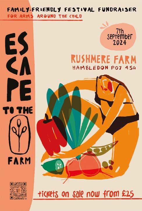 Join us for a magical family-friendly retreat at Rushmere Farm in Hambledon on Saturday 7th September 2024. Escape to the Farm is a daylong festival celebrating well-being, the arts, and community, all while supporting the charity Arms Around the Child.