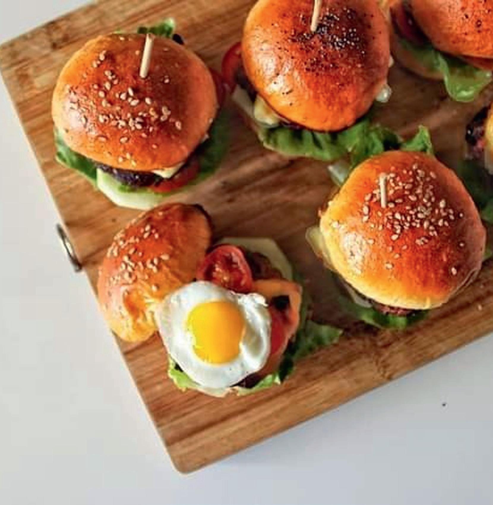 (Minimum order of (1) dozen of each) Egg, Bacon, White Cheddar on a Buttery Biscuit Vegan Burrito, BEYOND MEAT Sausage™, JUST Egg™, Black Beans & Vegan Queso (vv) Egg White, Zucchini, Peppers & Goat Cheese in a Vegetable Wrap (v) Egg, Pork Sausage Patty, American Cheese & English Muffin