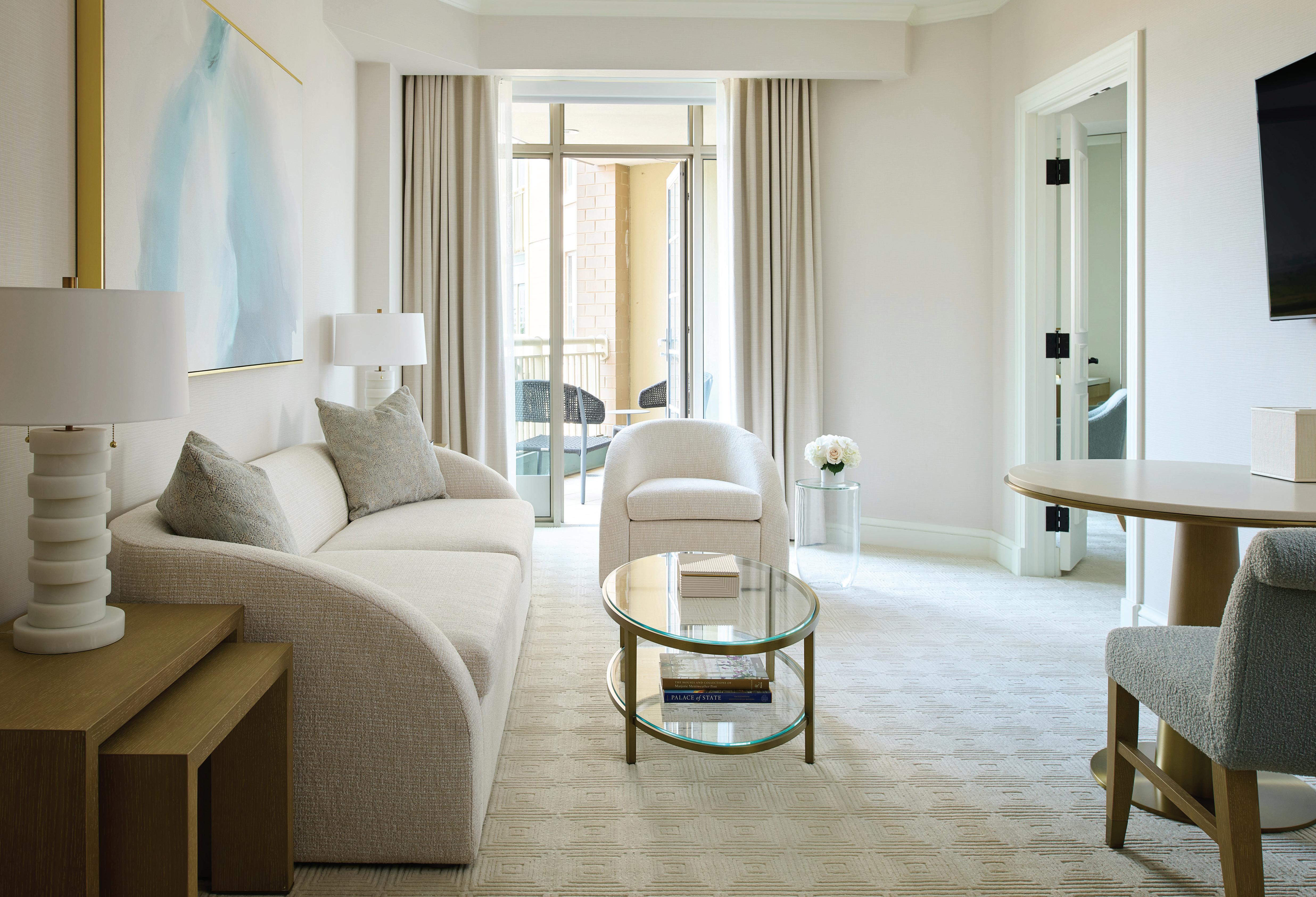 Experience sweeping top floor views in our newly upgraded 958-sq.-ft. signature suite, featuring a spacious walk-in wardrobe, a separate living room with a stylish sitting area and a guest powder room for added convenience.
