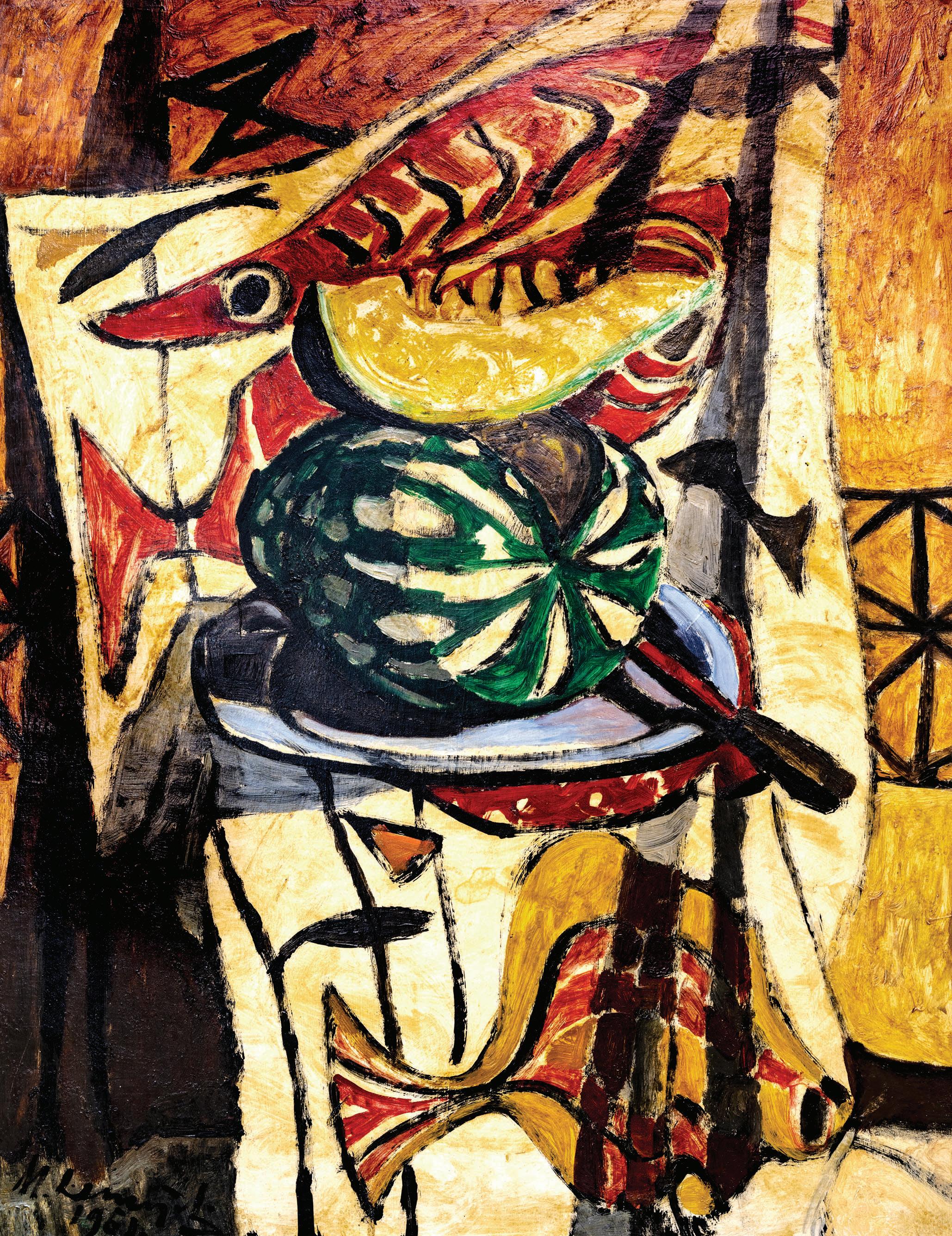 Michael Lester (Michał Leszczyński), 19061972, Polish, Girl with Pumpkin, 1965, oil on hardboard, Half Moon Collection, Montego Bay, Jamaica © Garlandstone Arts, LLC.