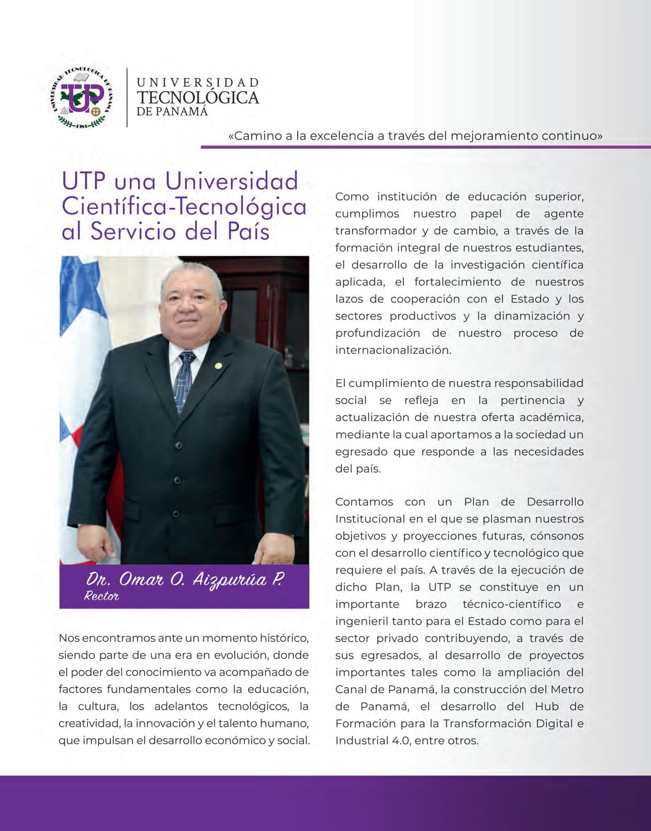 Rector: Ing. Omar Olmedo Aizpurúa Pino www.utp.ac.pa