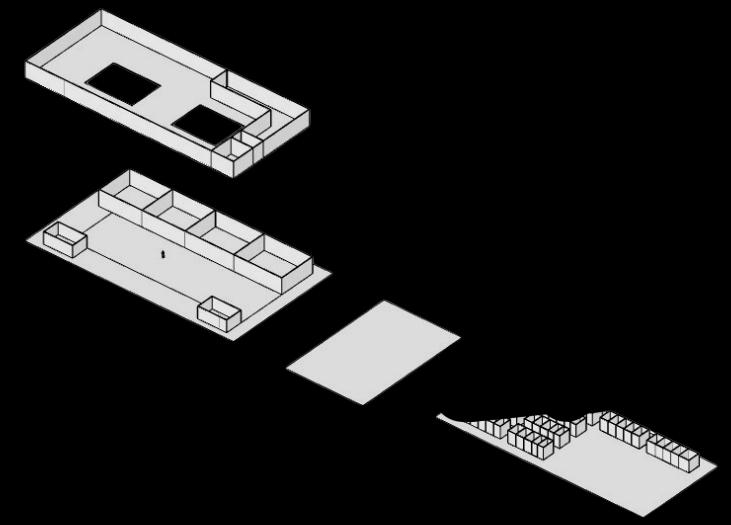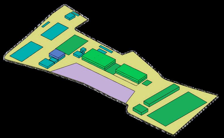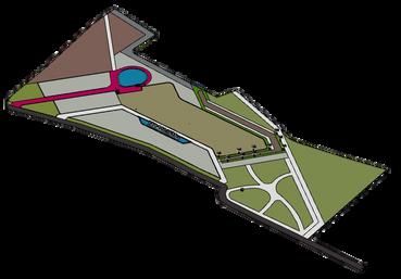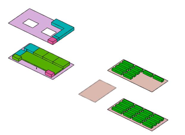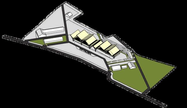 Tata massa menyesuaikan tapak dan sirkulasi dibedakan untuk memudahkan.