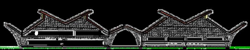 Bentuk fasad pada area mess nelayan dan tempat perbaikan jaring, penyesuaian terhadap atap pelana pada bangunan utama