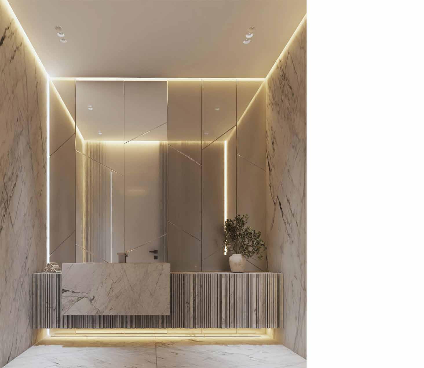 The luxurious bathroom of the master bedroom sets a new standard in design innovation with its unique layout. Divided into two distinct zones, the bathtub area and the toilet zone, it offers residents a harmonious and functional space for relaxation and rejuvenation. A key feature of this design is the meticulous attention to detail, ensuring that the toilet smell never permeates into the bedroom, thanks to separate exhaust systems and thoughtful design elements. This bathroom epitomizes our mission to introduce a pioneering prototype for master bedrooms, showcasing a perfect fusion of luxury and practicality.