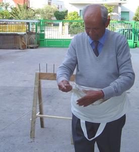 In quel tempo ormai lontano la massaia, a lavoro finito, sistemati i pezzi nella madia, li avvolgeva in un ultimo sguardo, si faceva il segno della croce, li copriva e li lasciava a lievitare. A lievitazione compiuta, se non aveva un forno suo a legna, cu lu tav lier ’n cap 1 , con il tavoliere in testa, li portava al forno pubblico dopo aver contrassegnato ciascun pezzo con una propria sigla perché non si confondessero con i pezzi degli altri.