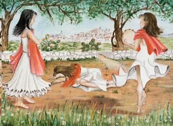 oltre... oltre l’Egeo, oltre lo Ionio, fino alla piana degli ulivi e l’adagiarono qui, su questa collina... qui... dove, ancora oggi, il mare la vagheggia e il vento l’accarezza.