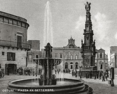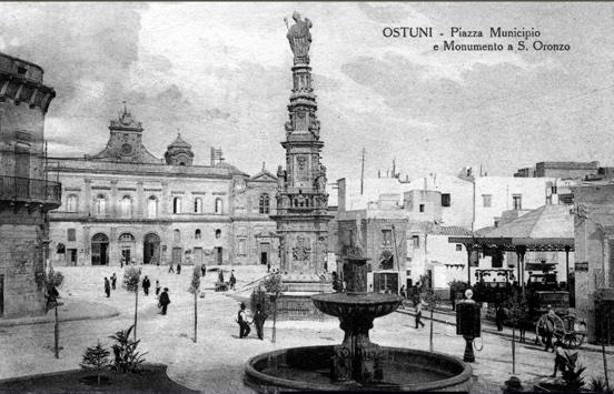 dati, quelli tornati a casa e quelli morti al fronte – ognuno di questi ultimi ricordato da un albero nel cittadino Parco della Rimembranza - sportivi, strilloni, trullari, venditori ambulanti... e – perché no? – anche loro... gli ingenui del paese, quelli, come Pasquale lo scemo di papà, in gergo Pascal lu pacchiaron d tata, espressione che, preceduta da un fischio e canticchiata ad alta voce, fu usata come richiamo di raccolta dagli ostunesi dispersi nel mondo per motivi di lavoro... e ancora F delu lu uerc , Fedele il cecato, N cola la banna, Nicola la banda, che, con la loro incosciente, ingenua e disarmante bonomia, donavano momenti di sorriso e di spensieratezza alleggerendo, in chi li incontrava, il peso delle fatiche giornaliere... Tutti hanno costruito e scritto nella quotidianità la storia del nostro paese e quella del nostro folclore... Sono tanti... proprio tanti, tra cui, anche e soprattutto, quelli non ricordati... padri, madri, figli dai mestieri, arti e professioni le più disparate. Sono loro gli eroi, quelli che, linfa operosa e incessante, nell’anonimato della comunità cittadina, hanno dato e danno vita ancora oggi, giorno dopo giorno, alla storia di Ostuni, al suo folclore e alla sua bellezza imperitura.